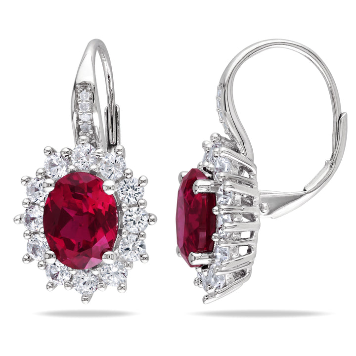 Mimi & Max 8ct TGW Created Ruby and White Sapphire Leverback Earrings in Sterling Silver