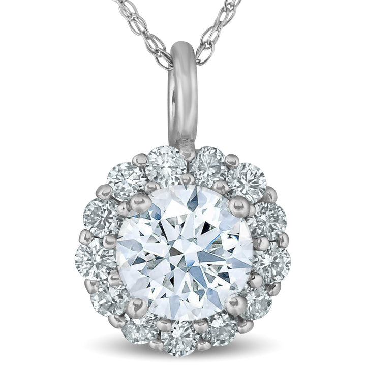 3/4 Ct TW Round Cut Diamond Halo Solitaire Pendant 14k White Gold Necklace