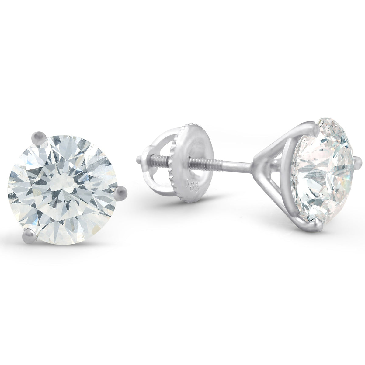 Certified 4 1/2 Ct Lab Grown Diamond Martini Screw Back Studs 14k White Gold