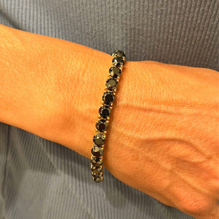 35Ct Black Diamond 14k Yellow Gold Women's Tennis Bracelet 7'