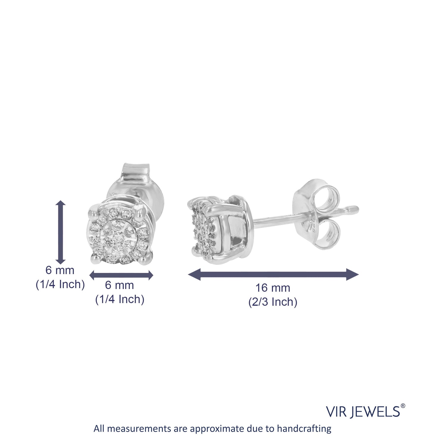 These 1/8 cttw Lab Grown Diamond Stud Earrings by Vir Jewels are a timeless essential. Featuring 38 round-cut diamonds prong-set in sterling silver, these studs provide a delicate yet dazzling sparkle. Their classic silhouette makes them a versatile staple, perfect for everyday wear or as a refined accent to formal attire. A must-have addition to any jewelry collection.