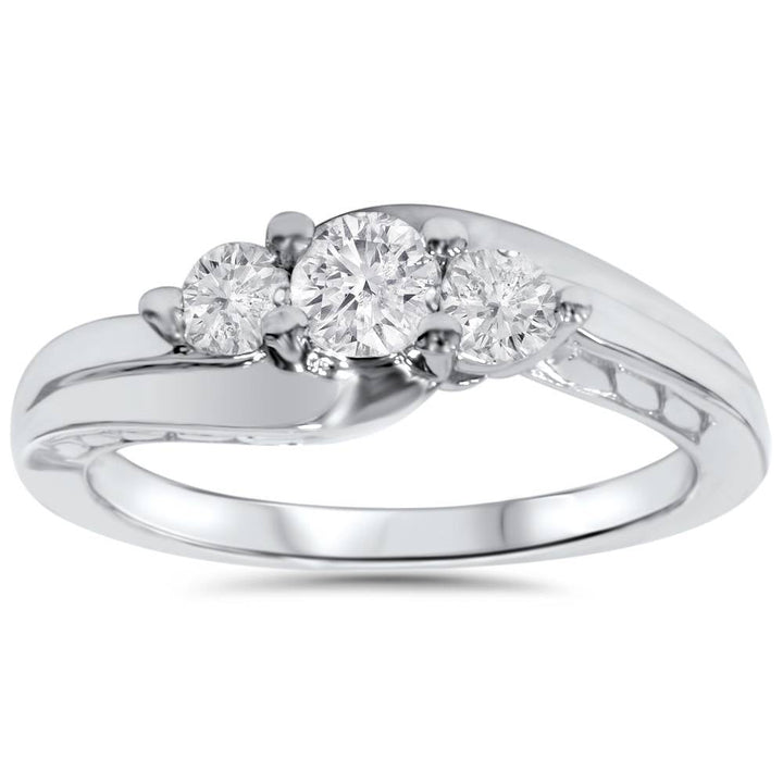 1/2ct 3 Stone Vintage Diamond Engagement Ring 10K White Gold