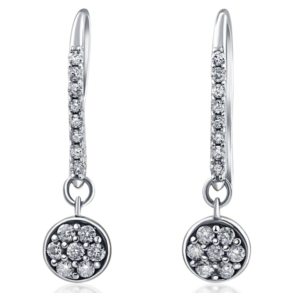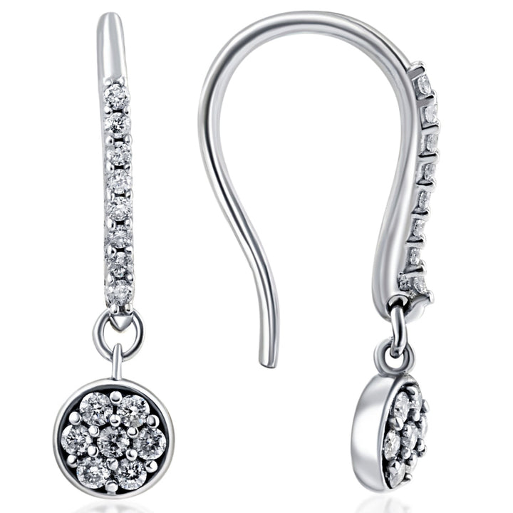 VS 3/8ct Diamond Hoops Pave Dangle Earrings 18K White Gold 1' Tall