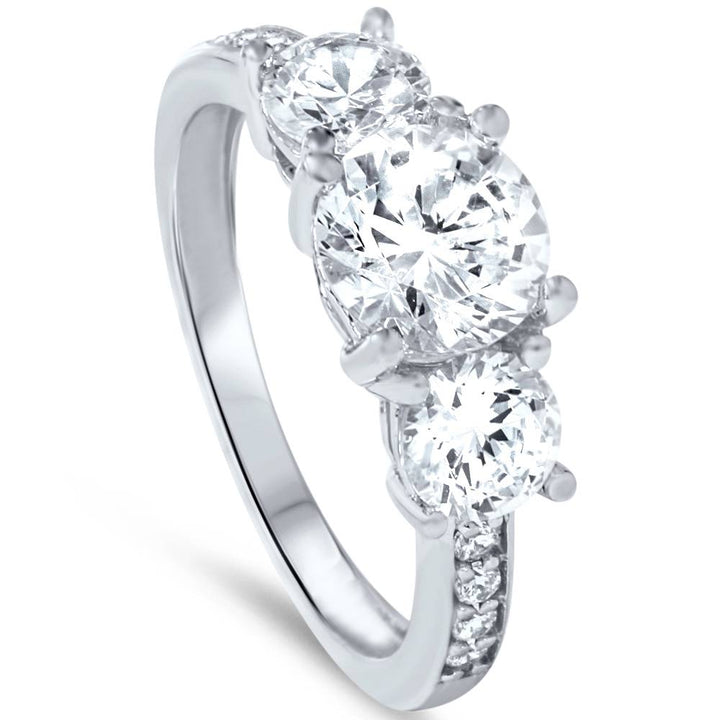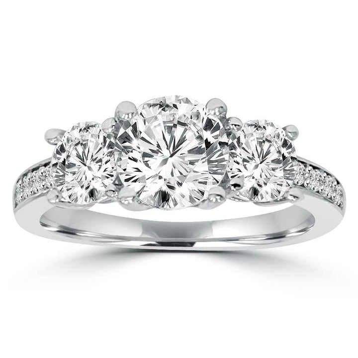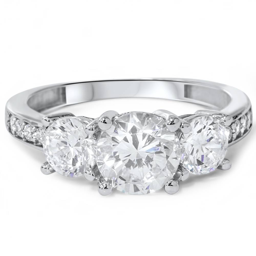 2ct Three Stone Round Diamond Engagement Ring 14K White Gold