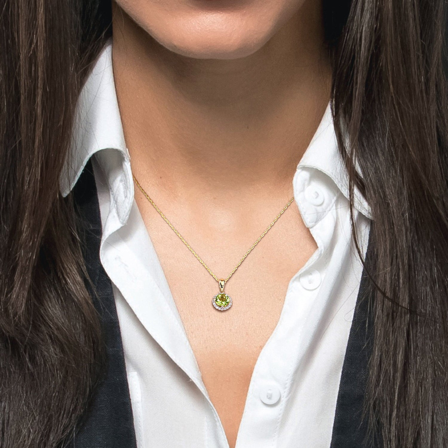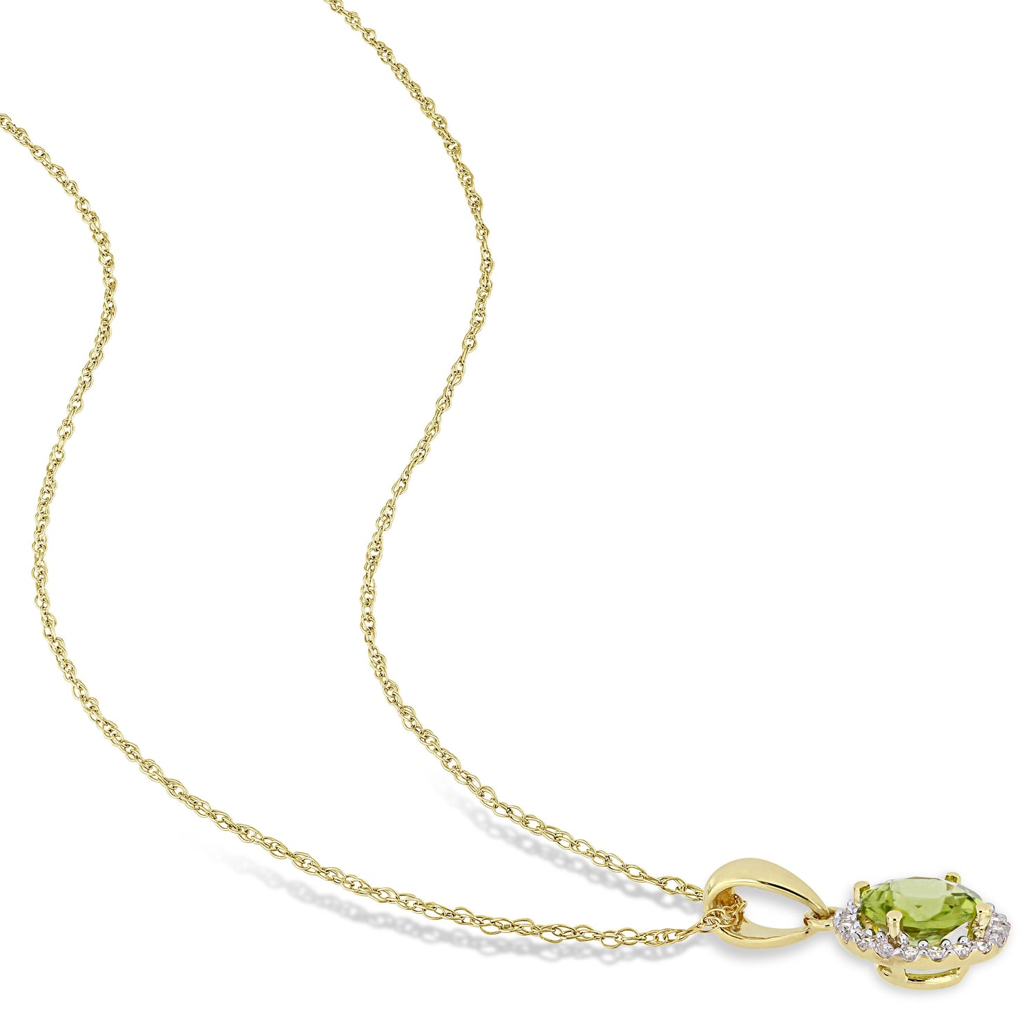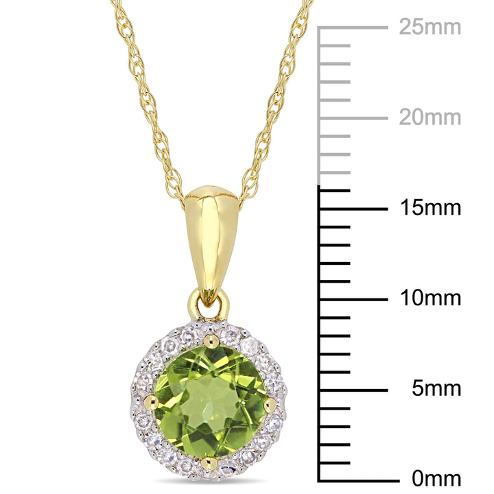 Mimi & Max 7/8ct TGW Peridot and 1/10ct TDW Diamond Halo Pendant with Chain in 10k Yellow Gold