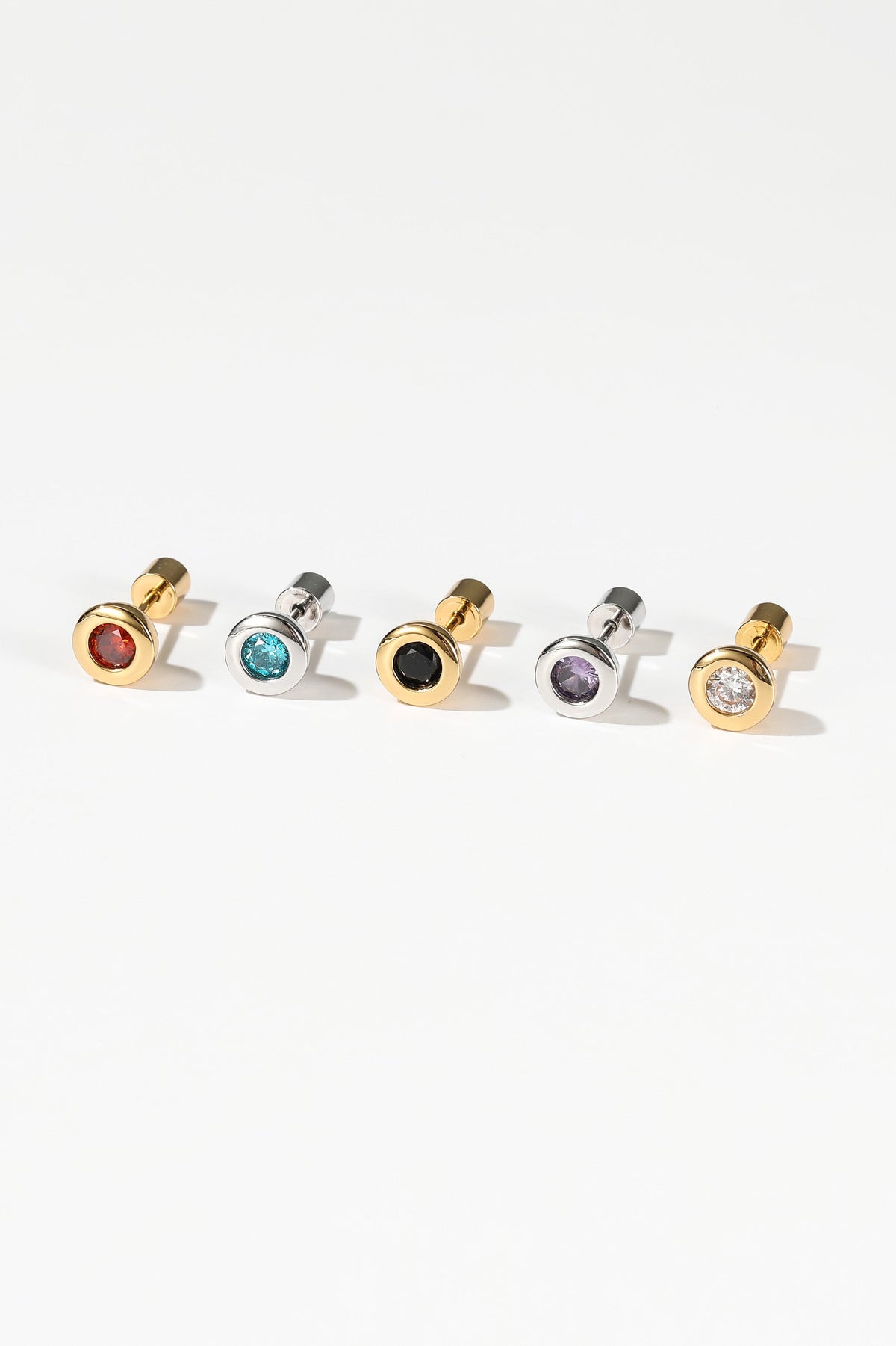 Handmade with premium cubic zirconia stones, these earrings feature a rodium-plated brass setting. The stud diameter is approximately 7mm (0.28 inches), with a sleek and secure bezel setting for a sophisticated finish.