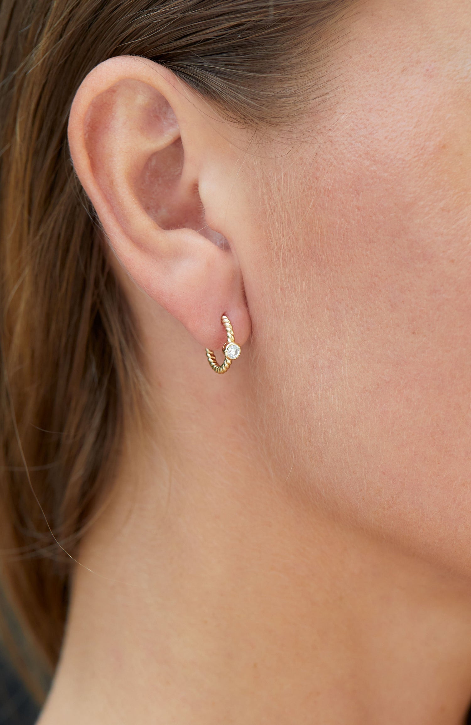These Italian Sterling 12mm Mini Huggie Earrings by Savvy Cie are a fresh take on classic mini hoop earrings. Plated in 18k gold over sterling silver, these earrings feature a small yet striking cubic zirconia stud that adds just the right amount of sparkle. The .5-inch drop length and stud bar closure make them secure and comfortable for everyday wear. Whether you're dressing up for a date night or keeping it casual, these huggies are the perfect addition to any outfit.