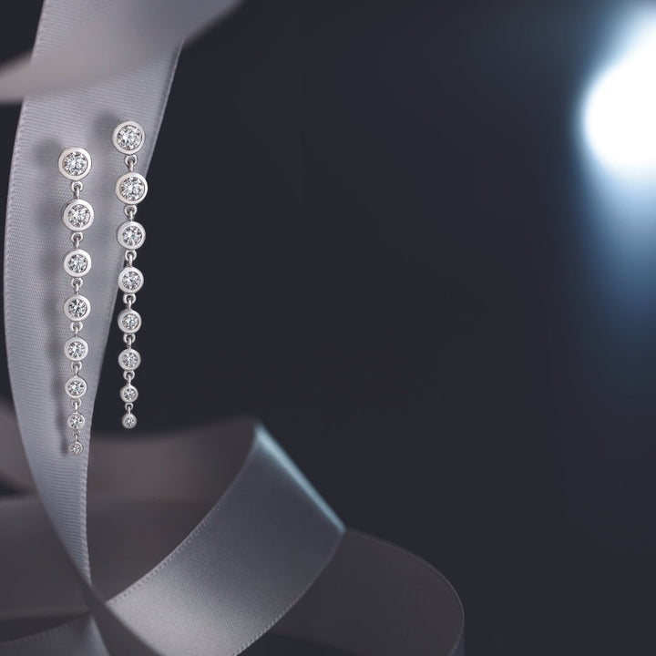 These 2ct Lab Grown Diamond Dangle Earrings by Pompeii3 are designed to captivate with their brilliant sparkle. The round cut lab-grown diamonds are set in solid 14k white gold, creating a sophisticated dangle effect that’s perfect for adding elegance to any outfit. At 1 1/2 inches tall, these earrings offer a refined look, ideal for special occasions or as a statement piece for everyday elegance.