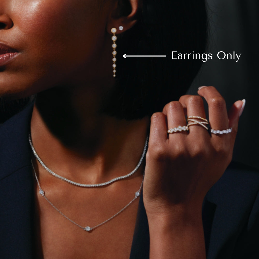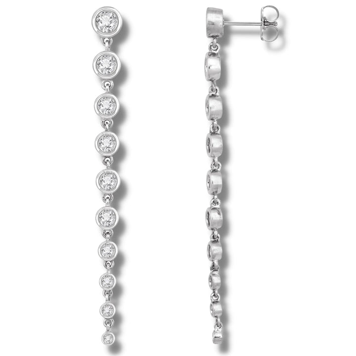 Handcrafted in 14k white gold with round cut lab-grown diamonds totaling 2ct (ctw). Earrings measure 1 1/2 inches tall.