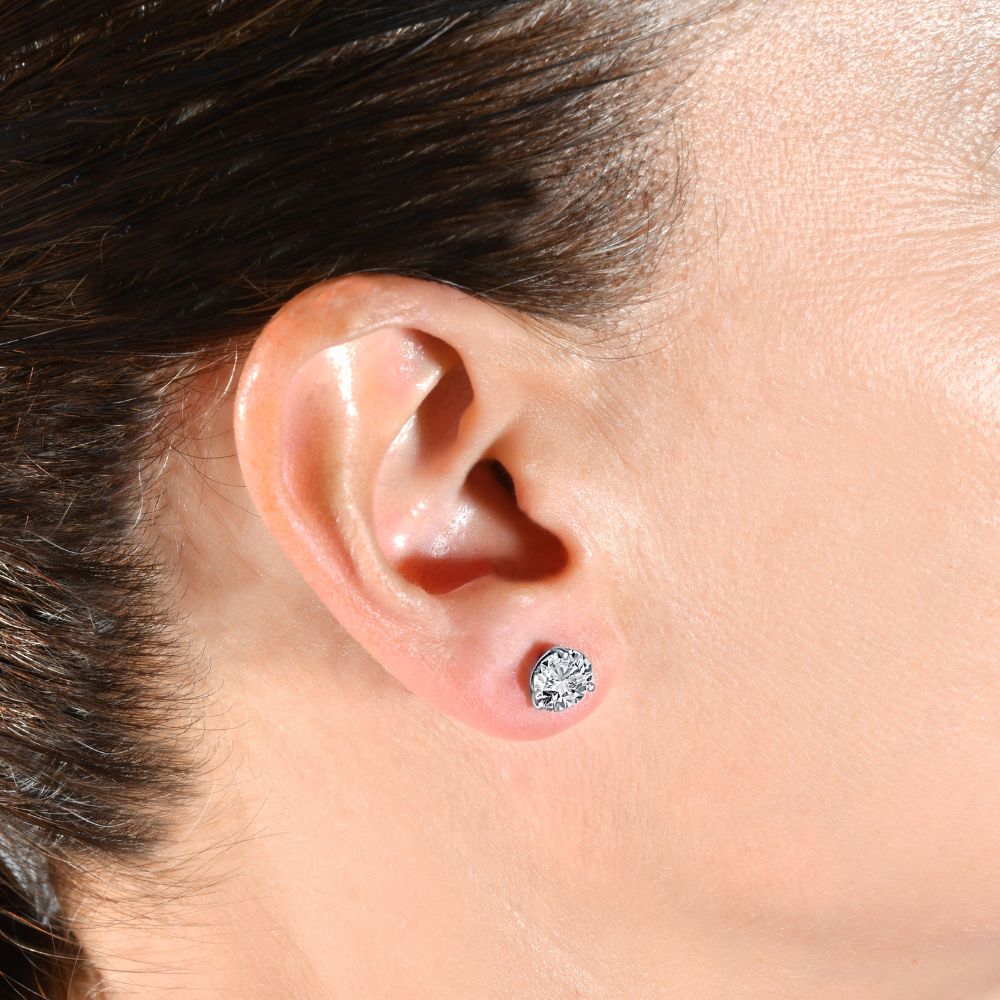 The 1 1/2Ct Diamond Studs Lab Grown 14k White Gold Lab Grown Diamond Earrings by Pompeii3 features two matching round brilliant cut lab-grown diamonds, prong set in solid 14k white gold with 3-prong martin settings. These earrings provide a classic and sustainable option for diamond studs.