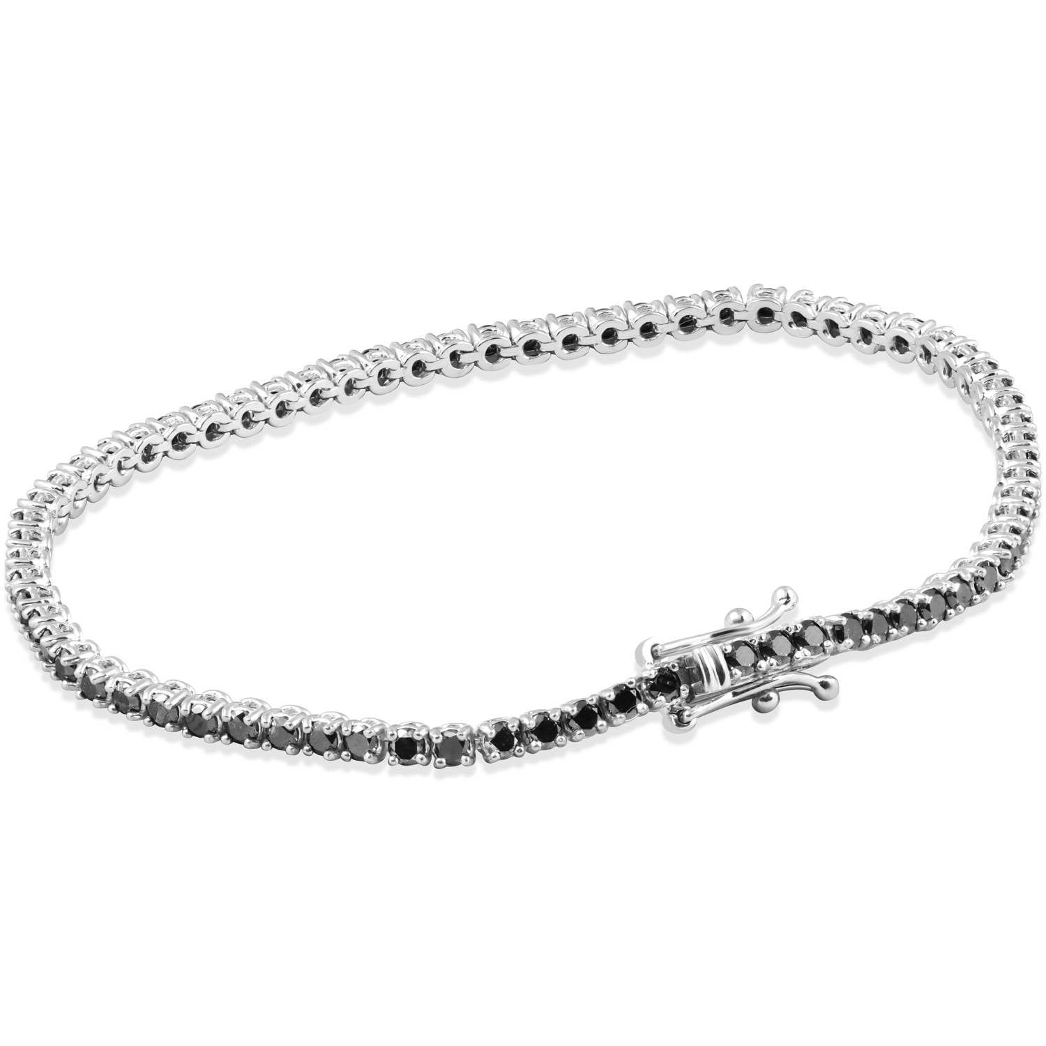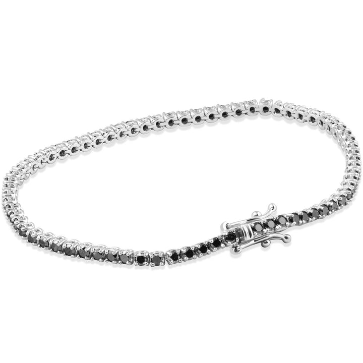 Handcrafted in 14k white gold with round cut black color-enhanced diamonds, totaling 3ct (ctw). Double lock clasp for added security.