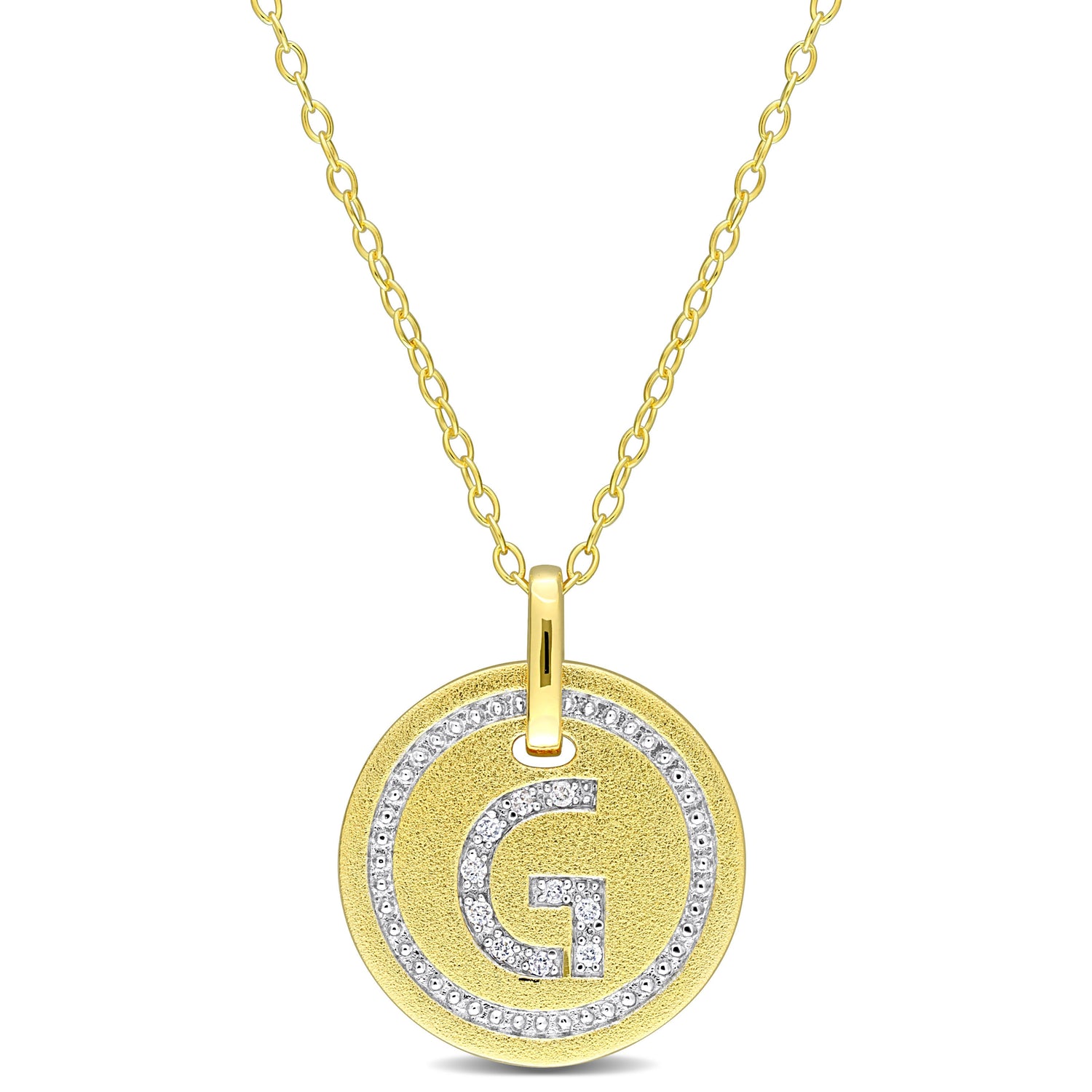 Mimi & Max G Initial Diamond Accent Pendant with Chain in Yellow Plated Sterling Silver