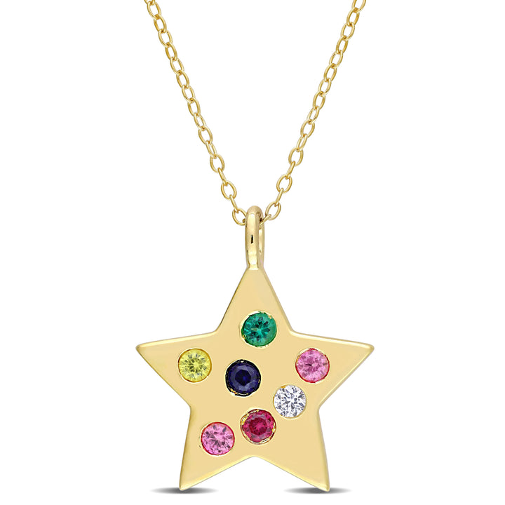 Mimi & Max 3/5ct TGW Multi-Color Gemstones Star Pendant with Chain in Yellow Plated Sterling Silver