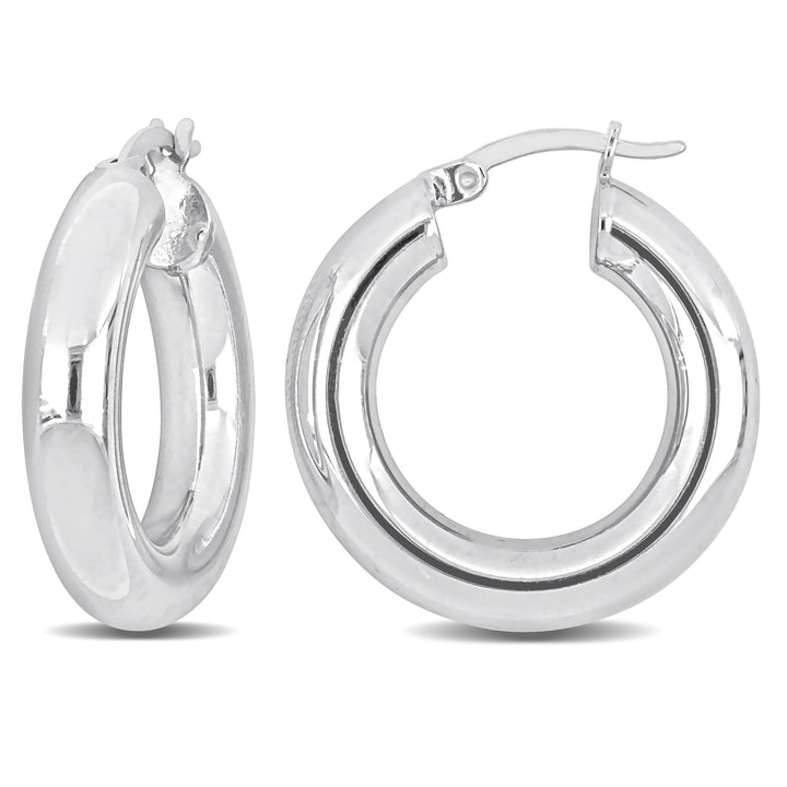 Mimi & Max 25x5mm Round Hoop Earrings in Sterling Silver: These round hoop earrings are crafted from high-quality sterling silver and measure 25x5mm, offering the perfect balance between subtlety and statement. The polished finish adds sophistication, making them ideal for both casual and formal occasions.