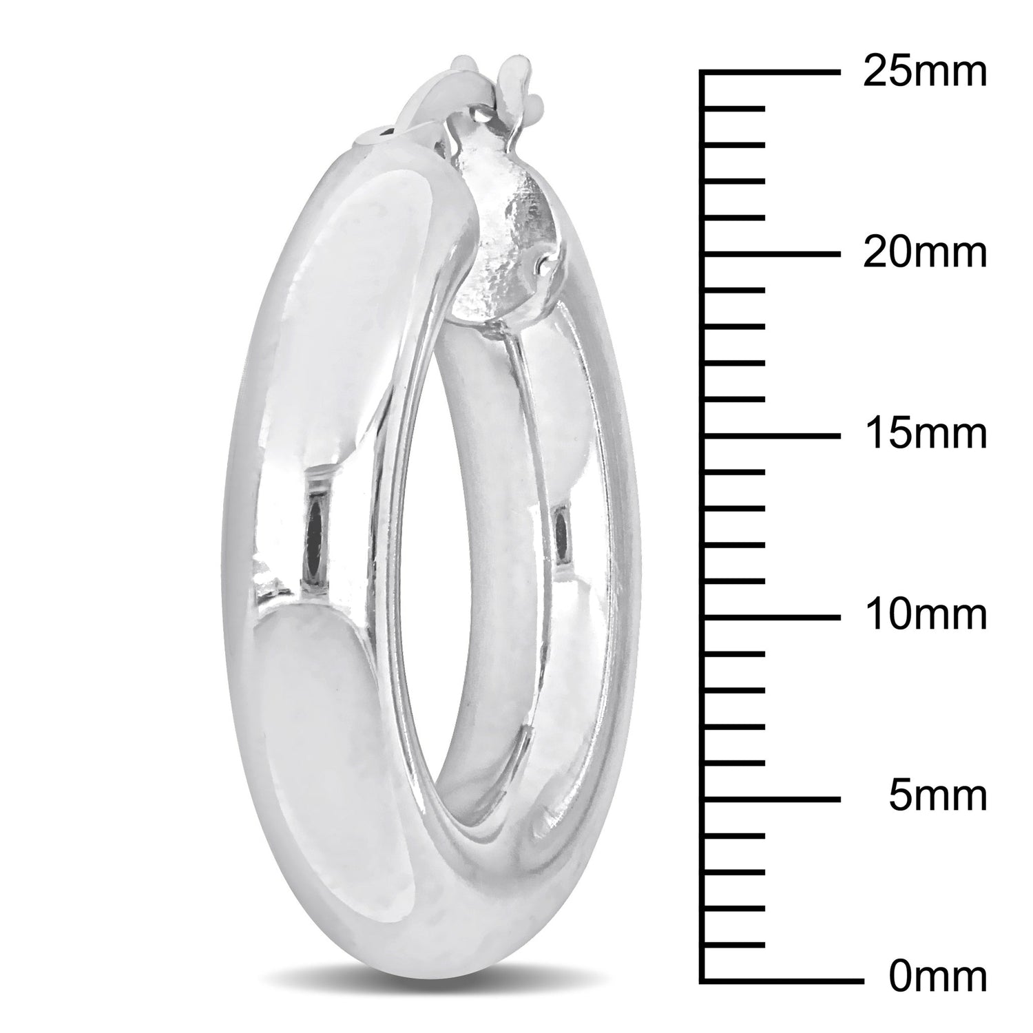 Made from sterling silver, these round hoop earrings measure 25x5mm, offering a sleek and polished design.
