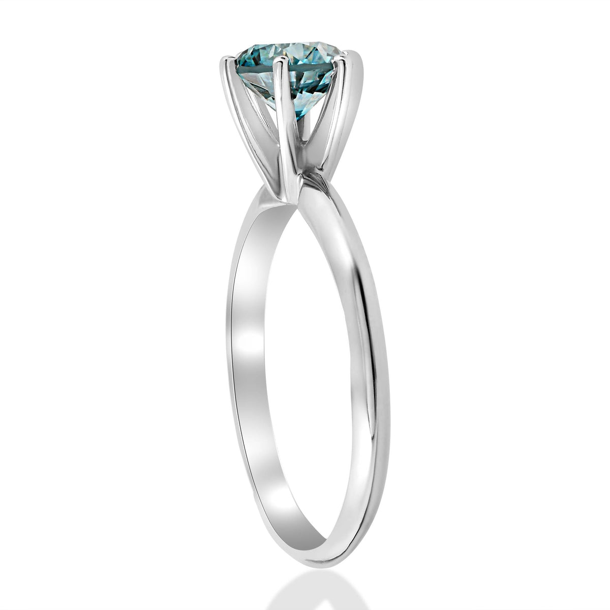 1 1/2ct Blue Diamond Solitaire Engagement Ring 14K White Gold