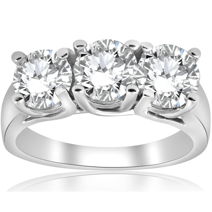 3ct Three Stone Diamond Engagement Ring 14K White Gold