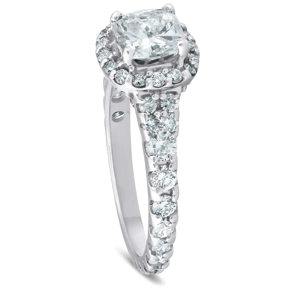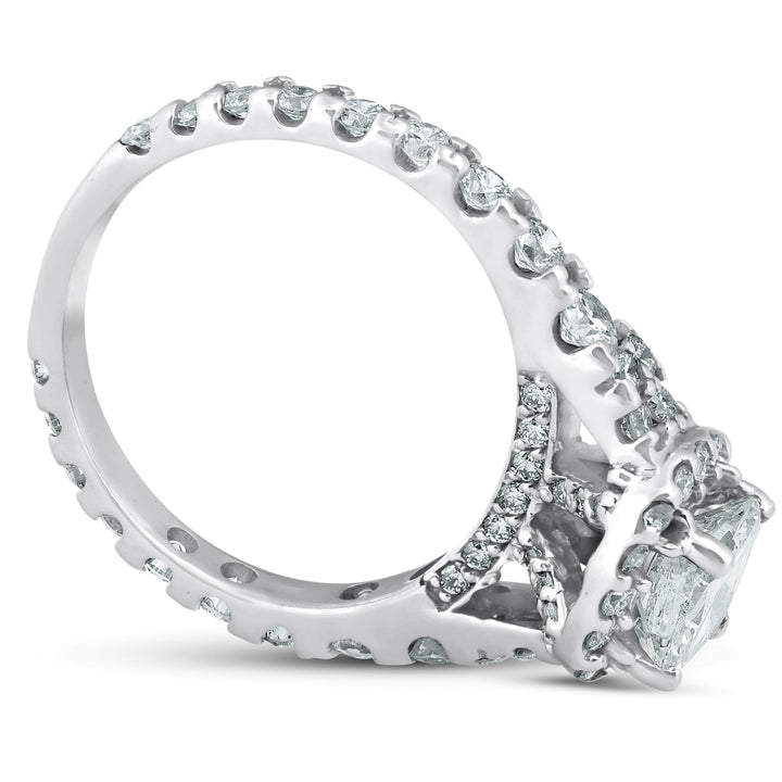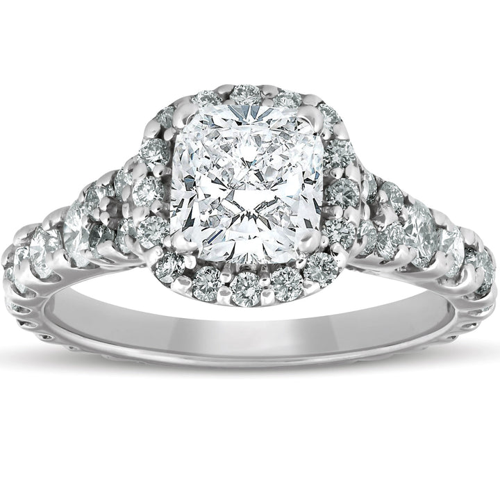 2 1/2ct Cushion Diamond Halo Engagement Ring 14k White Gold Lab Grown