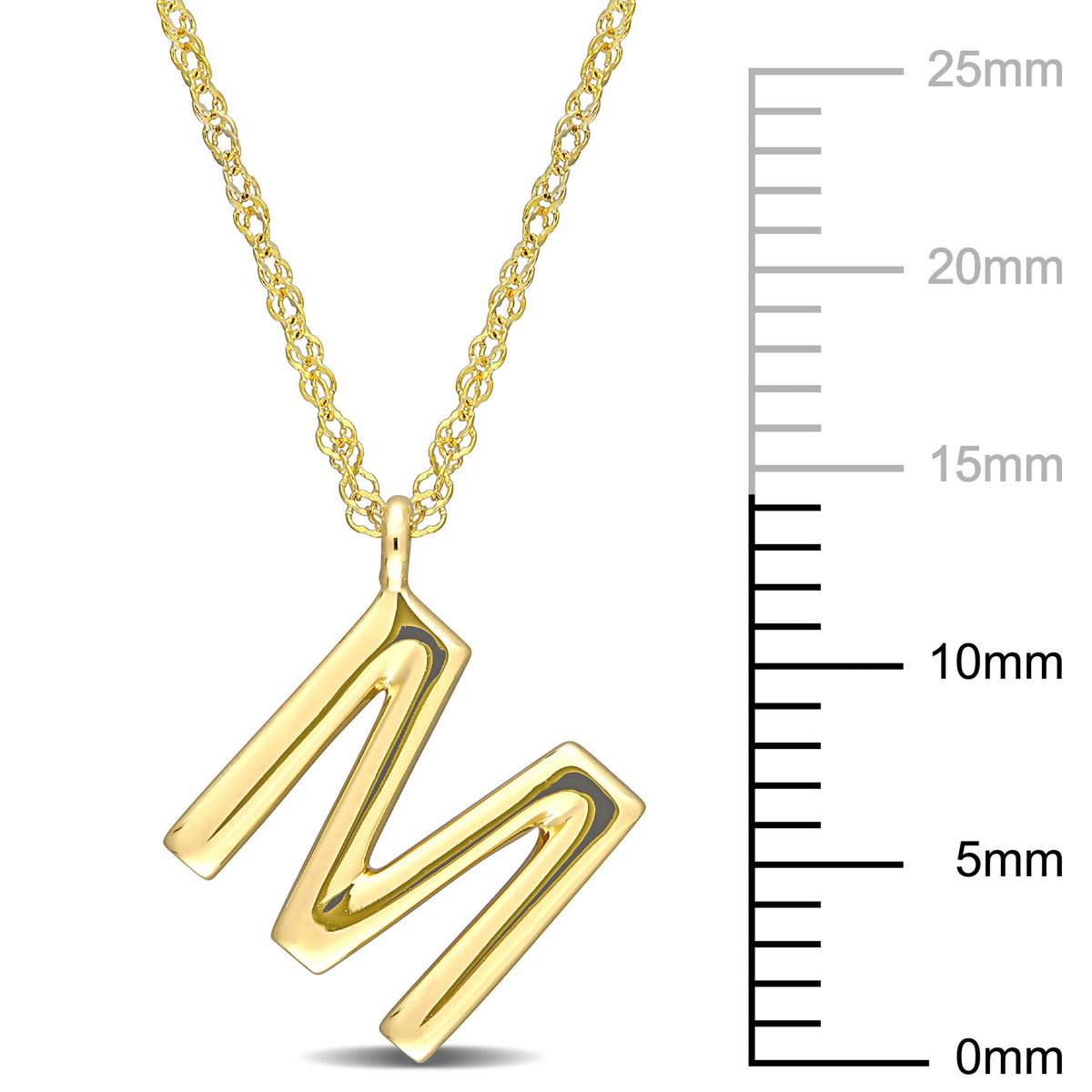 This Mimi & Max Initial 'M' Pendant with Chain in 14K Yellow Gold is a chic and personal piece. The pendant features a high-polish finish and hangs from a 17-inch Singapore chain, secured with a spring ring clasp. Whether for a special occasion or daily wear, this elegant initial pendant allows you to carry a meaningful symbol close to your heart. It's perfect for layering with other pieces or worn solo for a minimalist look.