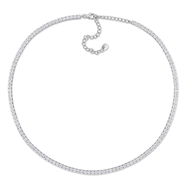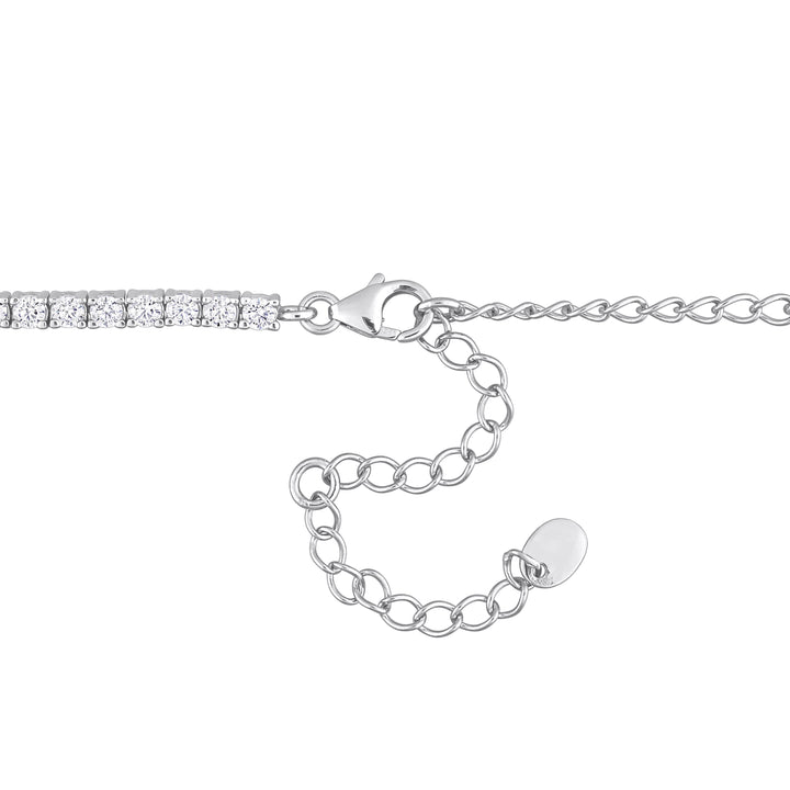 Crafted in sterling silver with white cubic zirconia totaling 13 4/5 carats. Measures 15" with an additional 3" extender and sterling silver clasp.