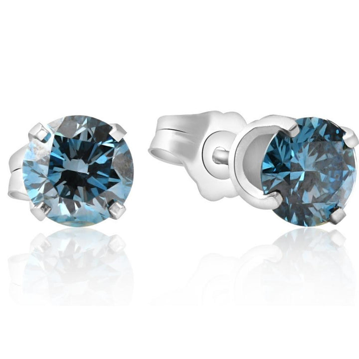 3/4Ct Blue Diamond Studs in 14k White Gold Lab Grown