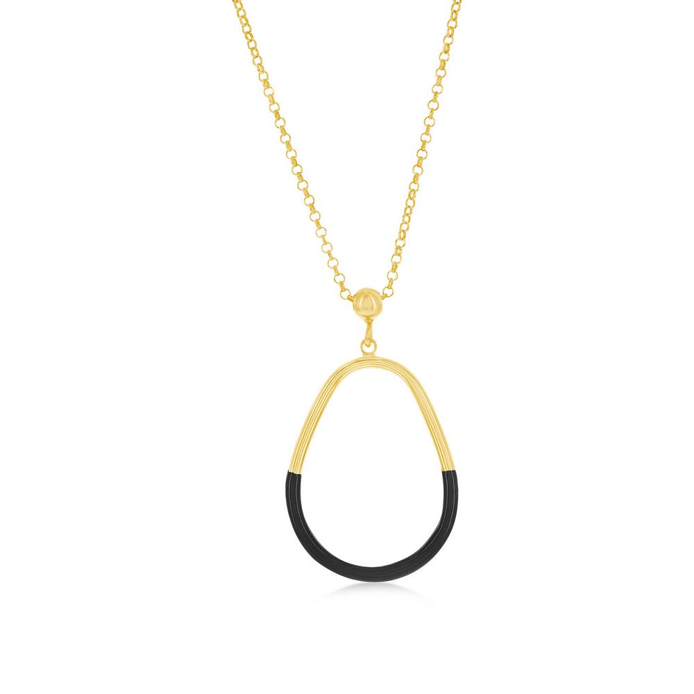Sterling Silver, Black Enamel Pear-Shaped Necklace - Gold Plated