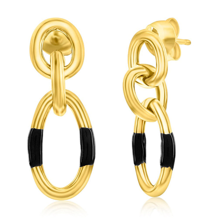 Sterling Silver, Black Enamel Dangle Earrings - Gold Plated