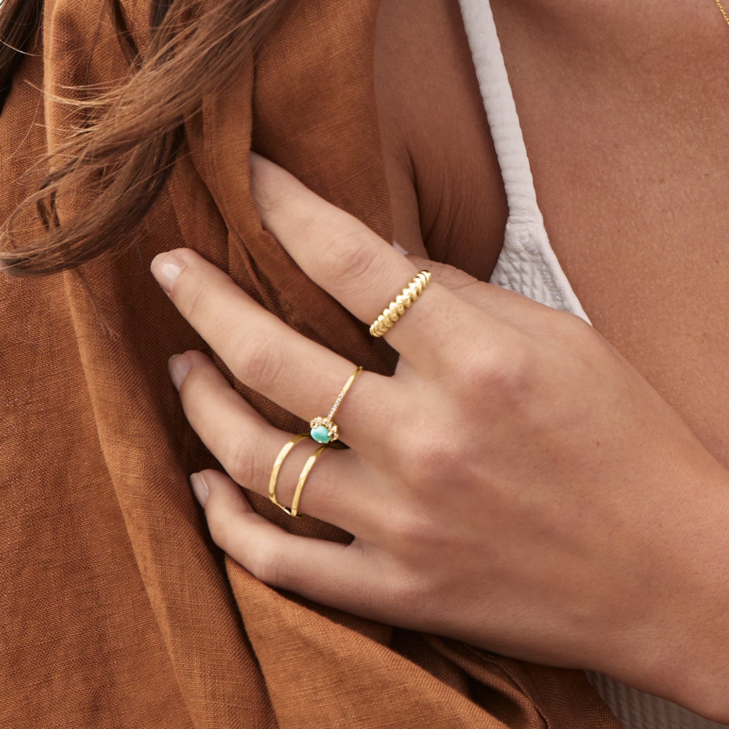 Canaria Turquoise Halo Ring With Diamonds in 10kt Yellow Gold