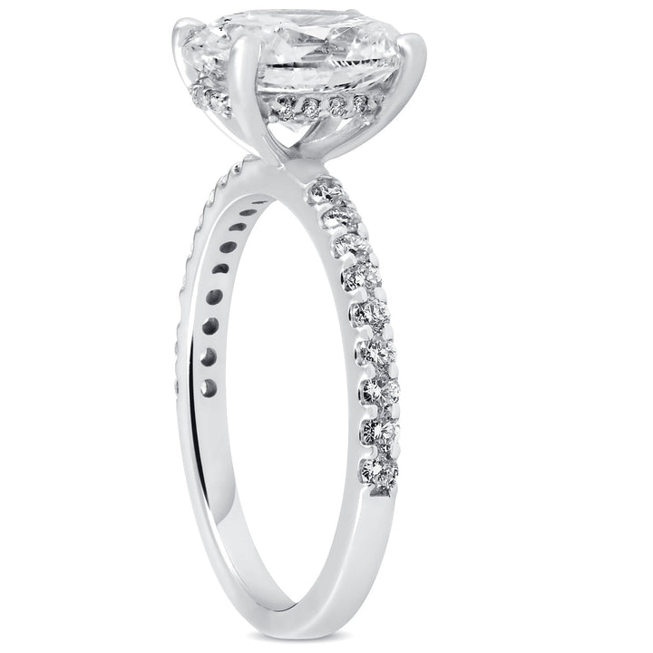 Certified 3 1/2Ct Oval Diamond Engagement Ring Side Halo Lab Grown White Gold