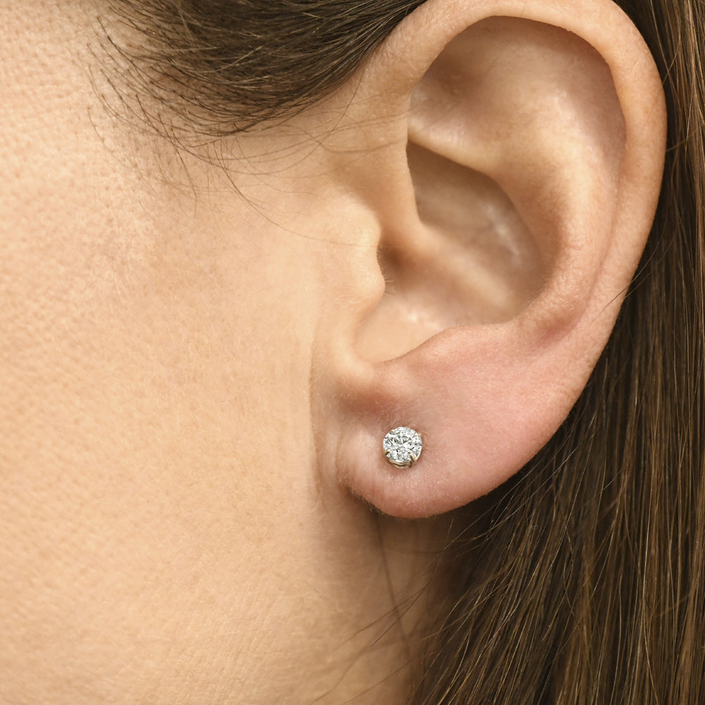 Handcrafted in 14k white or yellow gold with two round brilliant cut lab-grown diamonds, totaling 1/2ct (ctw). Screw back earring backings for secure wear.