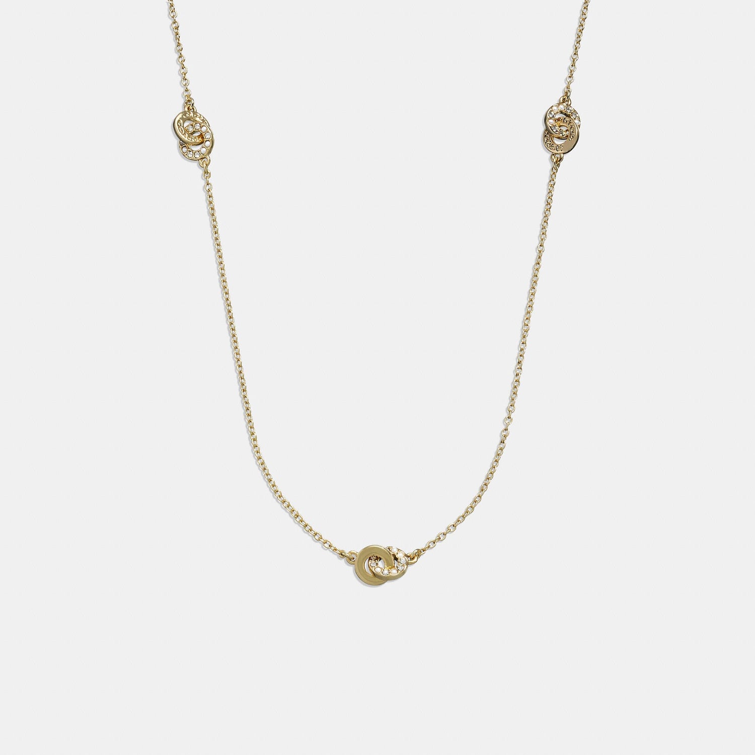 Coach Interlocking Open Circle Pearl Long Station Necklace