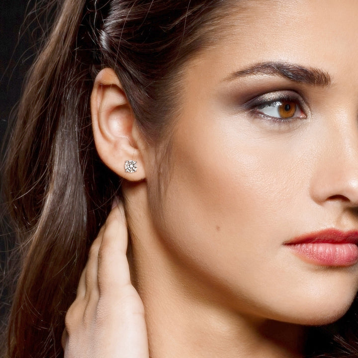 These Moissanite Solitaire Stud Earrings by Mimi & Max are the epitome of timeless elegance. Featuring 4.00 ct. t.w. of round-cut created white moissanite, these earrings radiate brilliance and fire comparable to natural diamonds. Set in luxurious 14k white gold, they offer a classic yet modern touch to any outfit. Their versatile design makes them an essential addition to any fine jewelry collection, perfect for both everyday wear and special occasions.