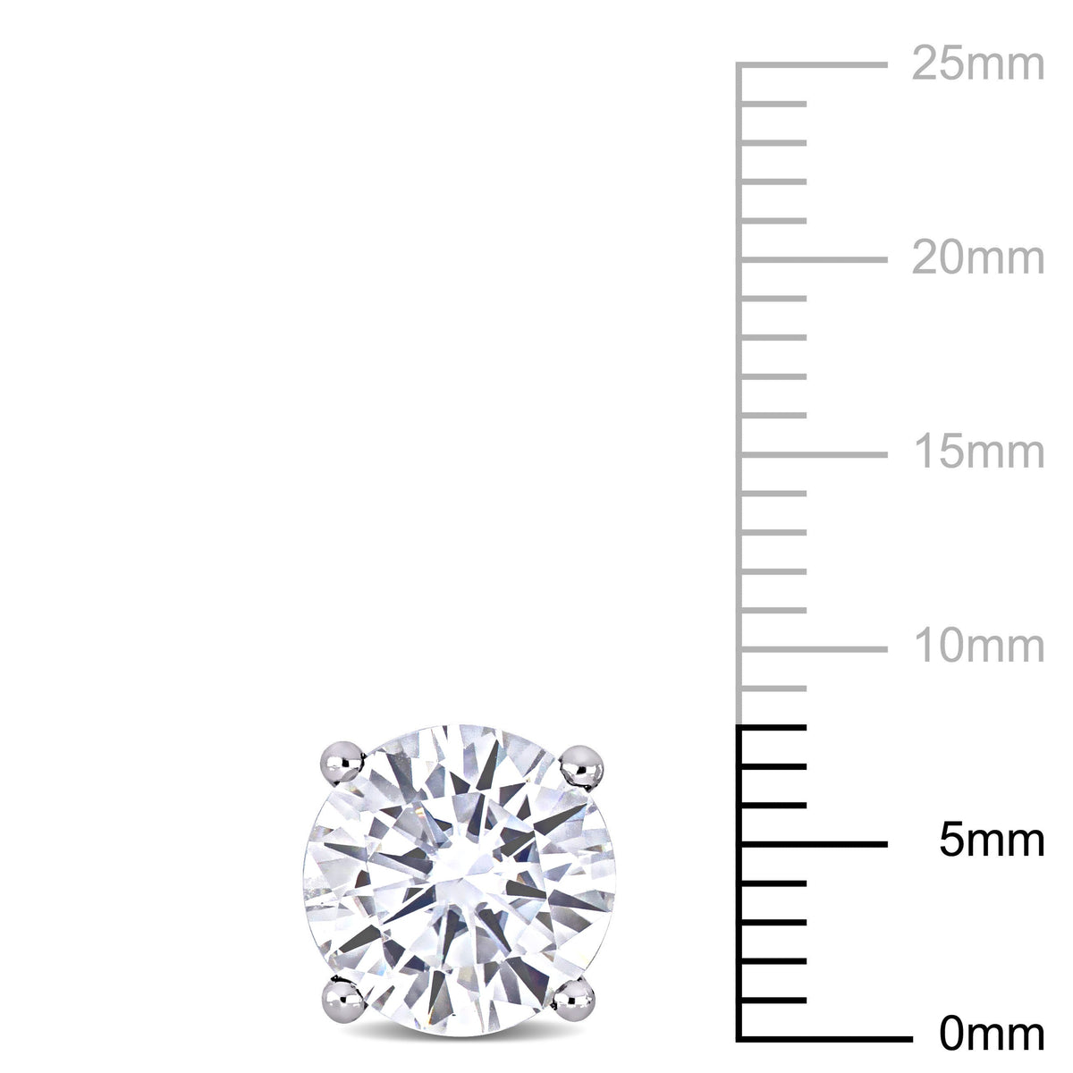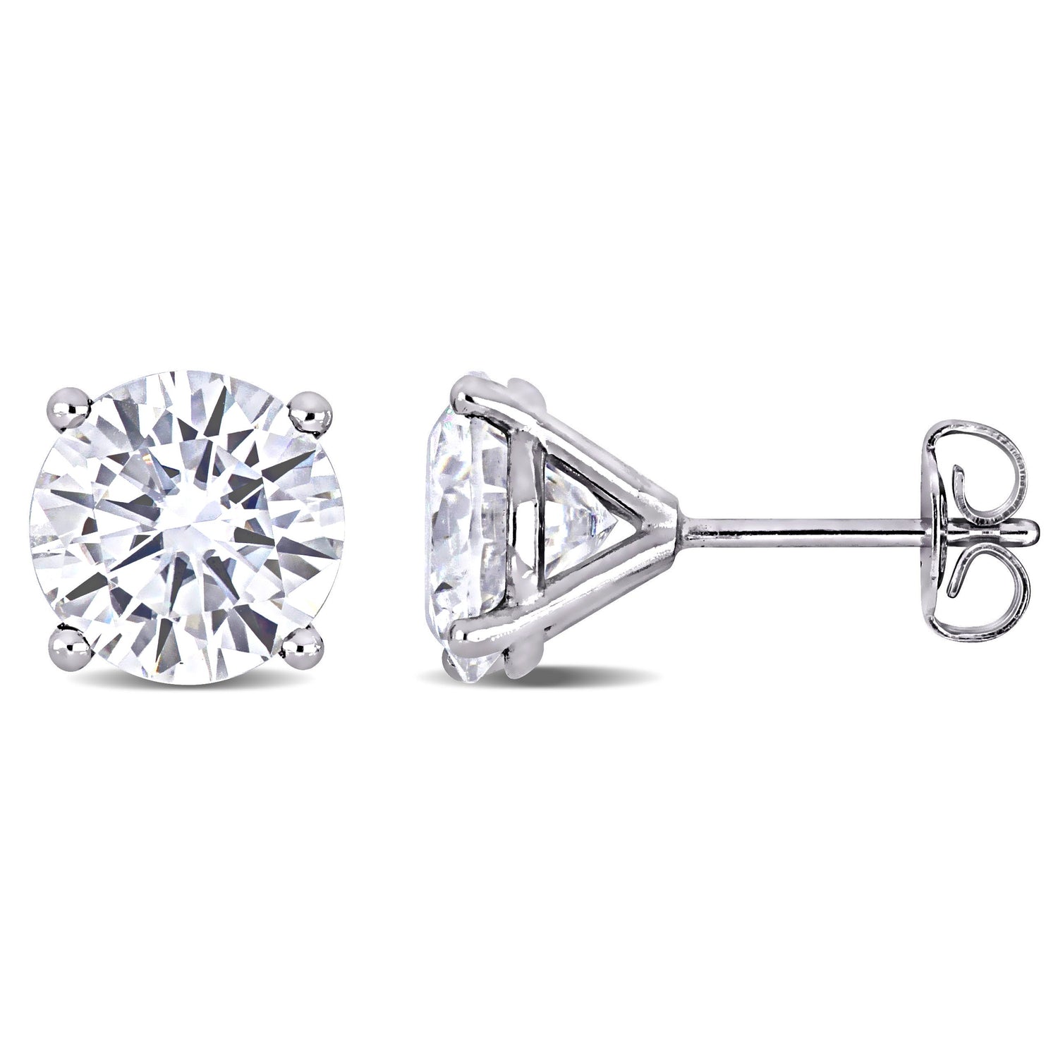 Crafted in 14k white gold, featuring two round-cut created white moissanite stones (4.00 ct. t.w.). Prong setting for optimal brilliance. High-polish finish. Butterfly clasp closure. Earring dimensions: 8mm x 8mm x 6.75mm.
