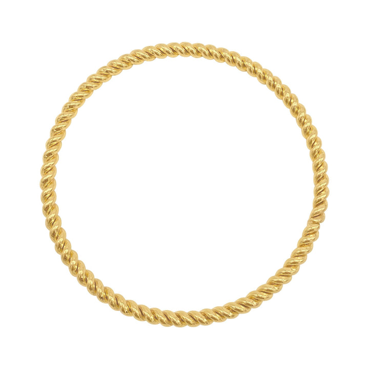 14k yellow gold-plated brass. 3mm thick rope design. No clasp. Fits standard wrist size.