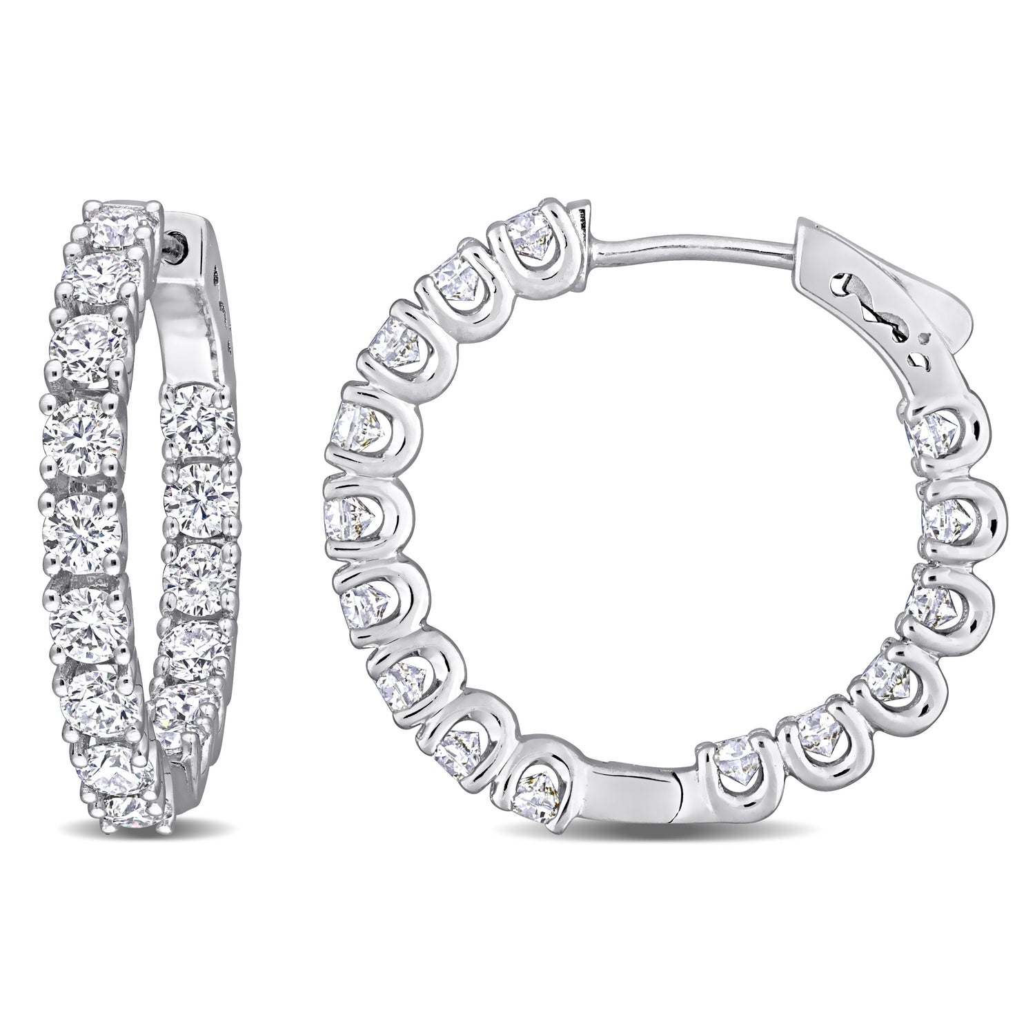Mimi & Max 3ct DEW Created Moissanite Inside-Outside Hinged Hoop Earrings in Sterling Silver