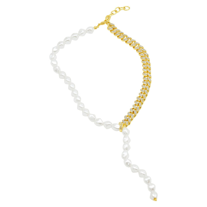 This Half and Half Pearl Lariat Chain Necklace in Gold by Adornia is a modern, luxurious statement piece that blends classic elegance with contemporary flair. The necklace features a stunning pearl drop, enhanced with 14k yellow gold-plated brass for a touch of refined sparkle. The adjustable chain allows for a customizable fit, and its 4' drop makes it an eye-catching addition to any ensemble. Whether dressed up or down, this necklace will elevate your style effortlessly.
