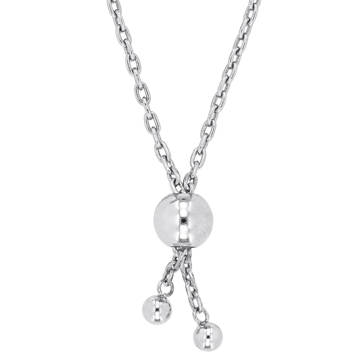 Sterling silver with 17 round-cut, prong-set moissanite gemstones. Adjustable 10-inch chain with bolo clasp.