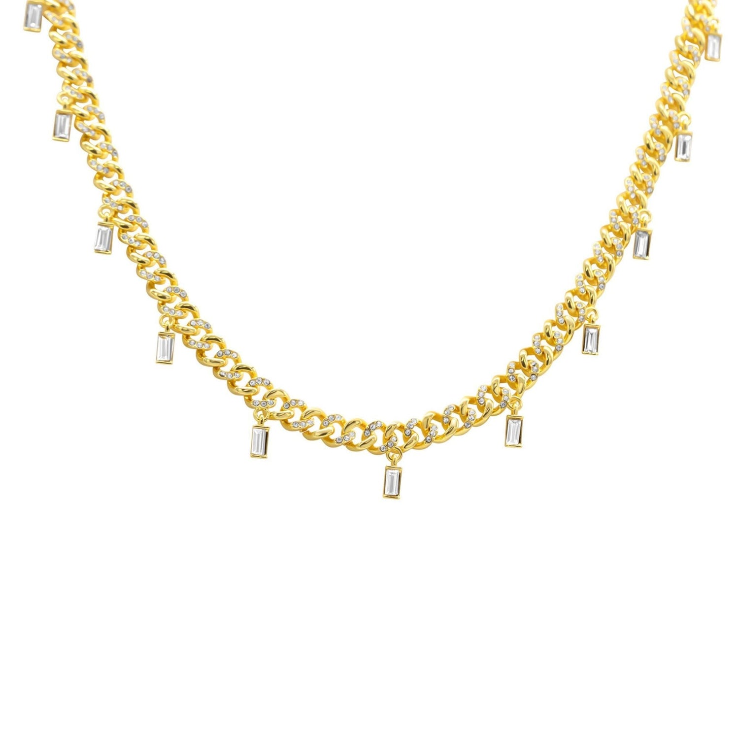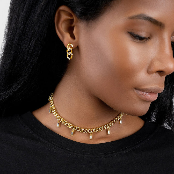 Curb Chain Baguette Dangle Adjustable Choker Necklace gold
