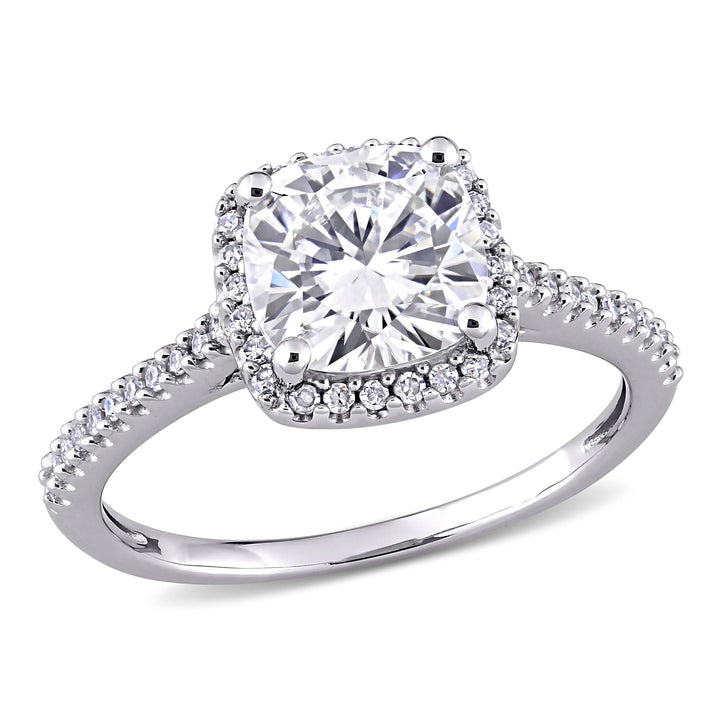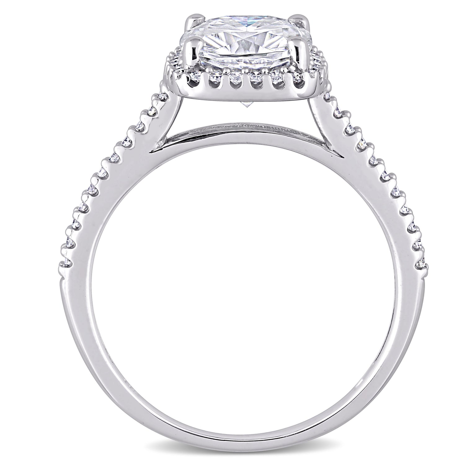Mimi & Max 2ct DEW Cushion Created Moissanite and 1/4ct TW Diamond Halo Engagement Ring in 14k White Gold
