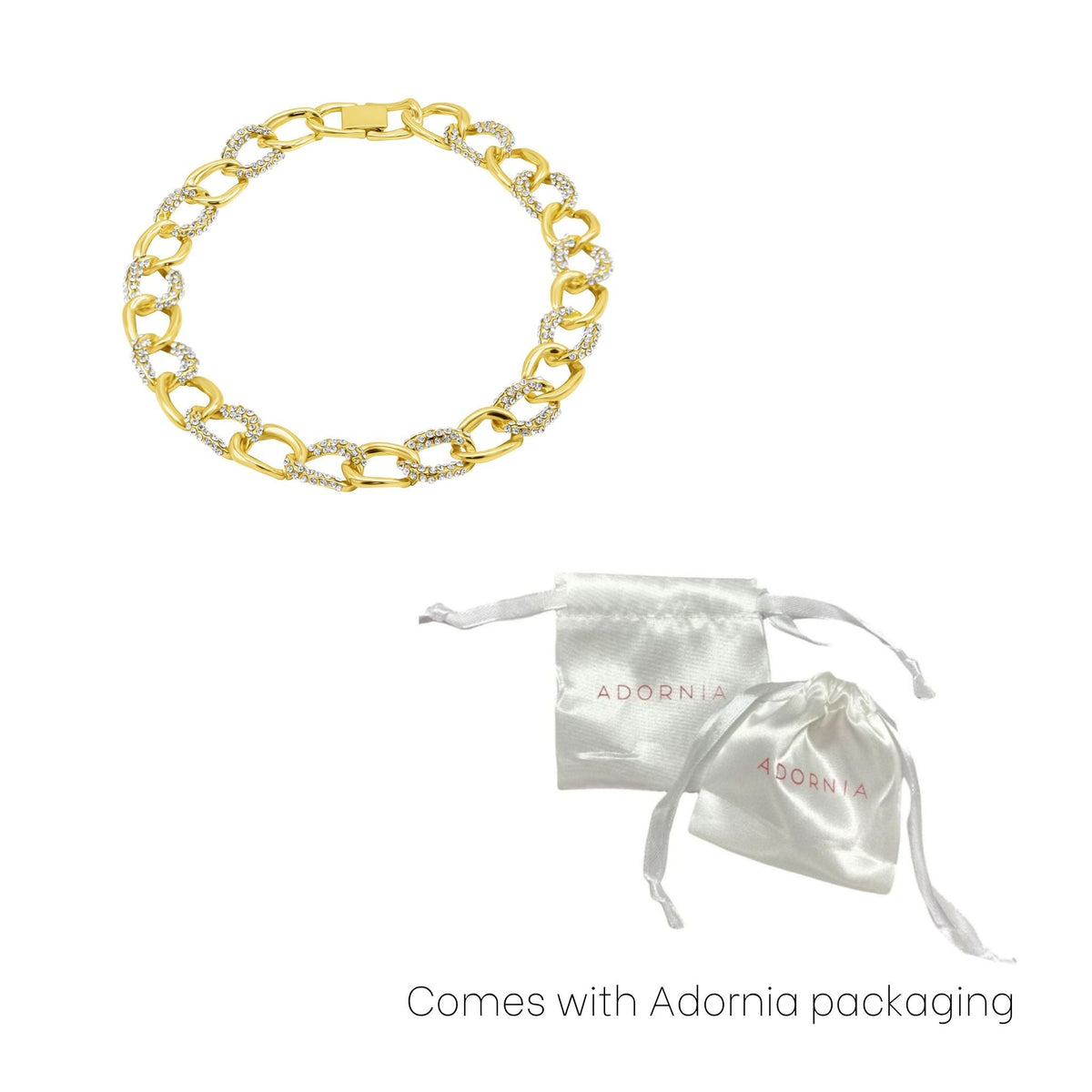 This Chunky Crystal Link Chain Necklace by Adornia makes a bold and modern statement. Crafted from 14k yellow gold-plated brass, this necklace features chunky crystal links that add both texture and shine to the design. The necklace's 16.5-inch length makes it ideal for layering with other pieces or wearing as a standout item on its own. Its clasp closure ensures a secure fit, making this necklace perfect for both everyday wear and special occasions.