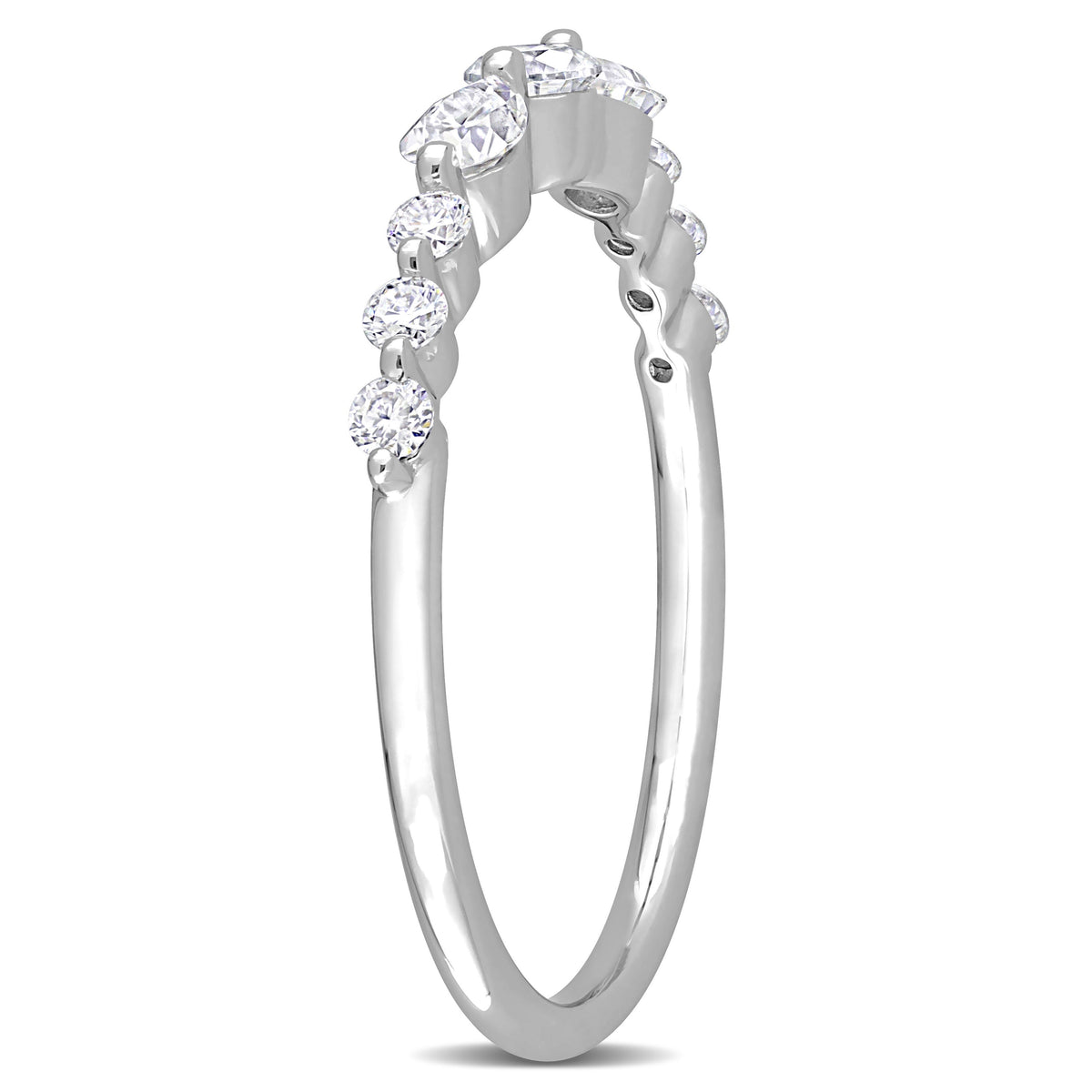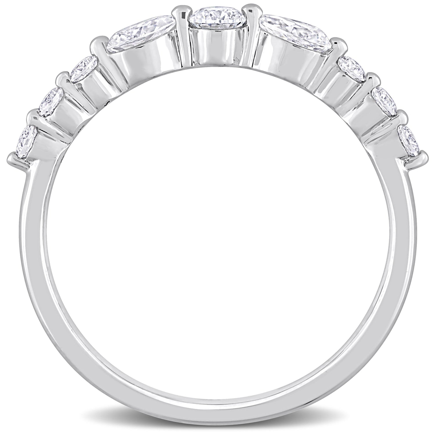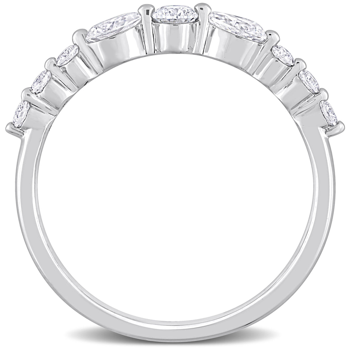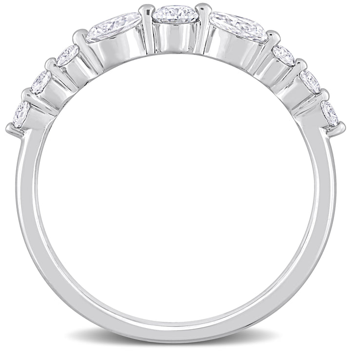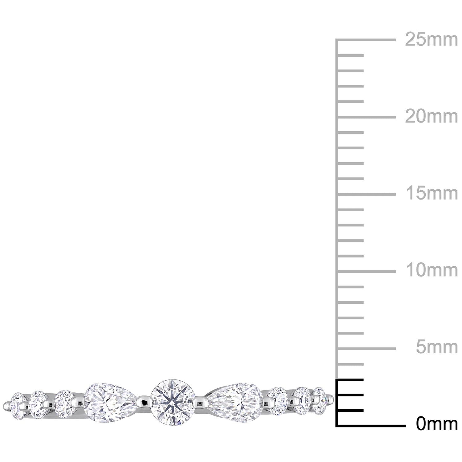 Crafted in sterling silver with round and pear-cut created white moissanite gemstones (1/2 ct. DEW). High-polish finish. Ring dimensions: 3mm wide x 21.6mm long x 3.3mm high. Band width: 1.4mm.