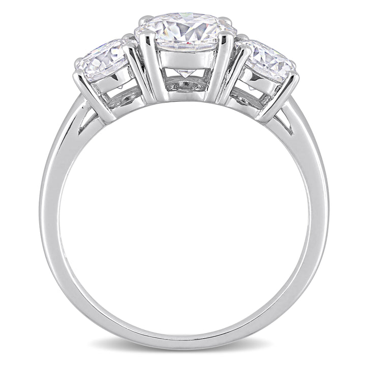 This 2 1/4ct DEW Created Moissanite Three-Stone Engagement Ring by Mimi & Max features three round-cut created white moissanite gemstones, set in a classic three-stone bridal design. Crafted in sterling silver and enhanced with a high polish finish, this ring symbolizes enduring love and elegance.