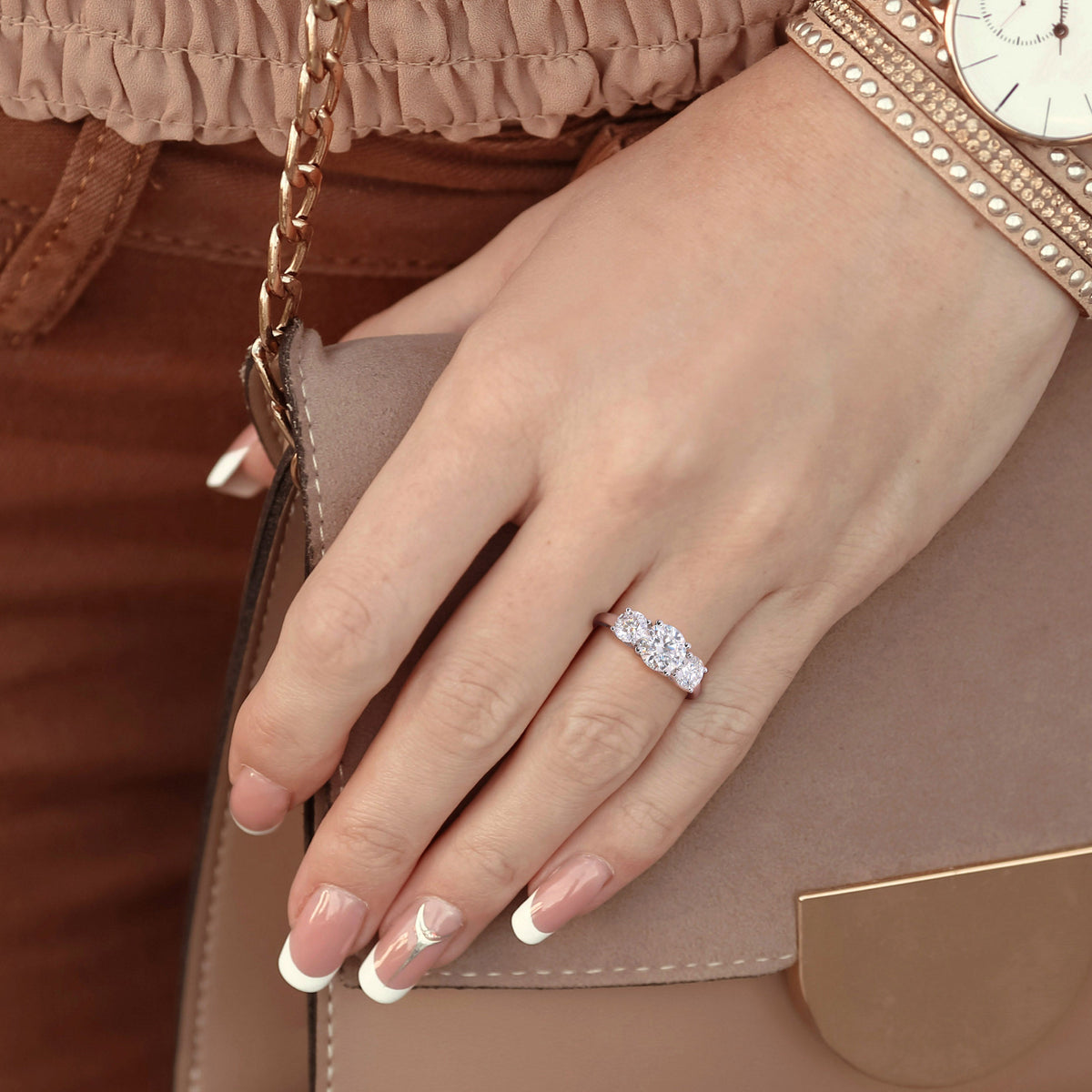 Mimi & Max 2 1/4ct DEW Created Moissanite Three-Stone Engagement Ring in Sterling Silver