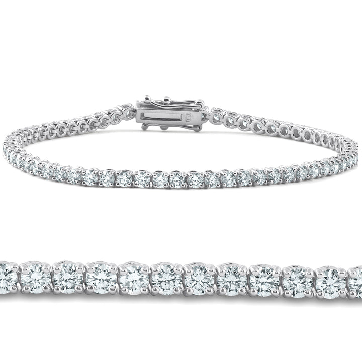 Set in 14k white or yellow gold with 4.00 ctw of round brilliant-cut natural diamonds (G-H color, I2-I3 clarity). Measures 7 inches long with a double-locking clasp.