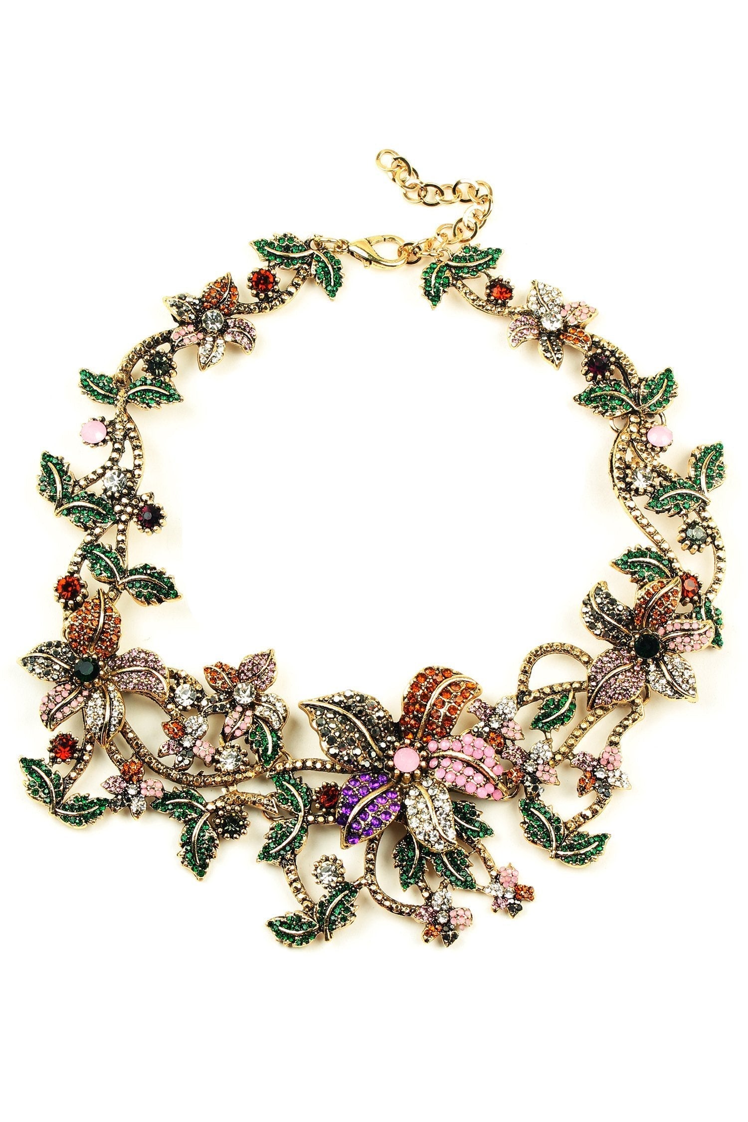 This Berlin Statement Necklace by Eye Candy LA brings the vibrant colors of spring to life with its multi-colored flowers and delicate green crystal leaves. Perfect for adding a fun and bold statement to any ensemble, this necklace embodies vitality and freshness. It’s an ideal choice for those looking to bring a touch of nature-inspired beauty to their wardrobe.
