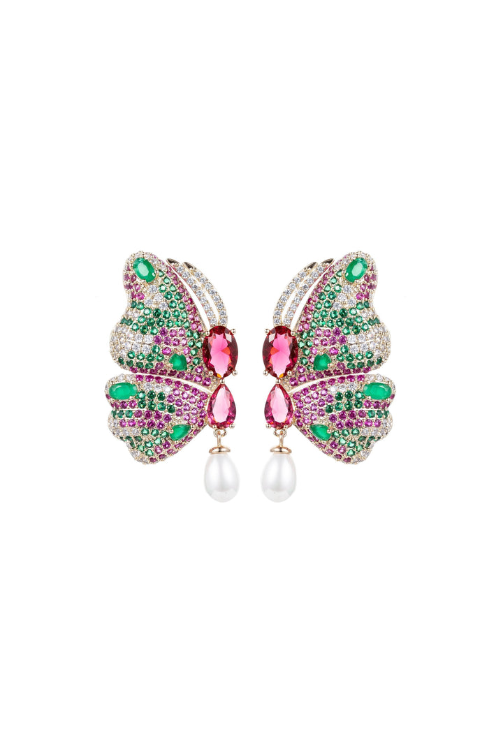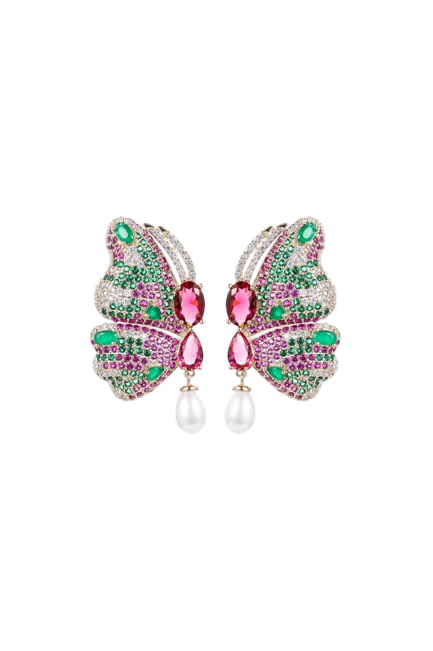 These Adonis Earrings by Eye Candy LA bring a touch of whimsy and elegance with their delicate butterfly motif. Inspired by the beauty and symbolism of butterflies, these earrings are adorned with freshwater pearls and sparkling CZ crystals, creating a look that is both charming and sophisticated. The 18K gold-plated brass setting adds warmth and durability, making them a versatile accessory for any occasion.