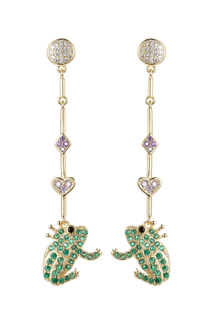 These Frog Prince Earrings by Eye Candy LA bring a playful and magical touch to your jewelry collection. The sparkling CZ stones bring these whimsical frog designs to life, symbolizing the charm of fairy tales and the promise of a happily-ever-after. These earrings add a fun, lighthearted twist to any outfit while maintaining a luxurious feel. Their push-back closure ensures a secure fit, making them an ideal choice for both casual and elegant occasions.