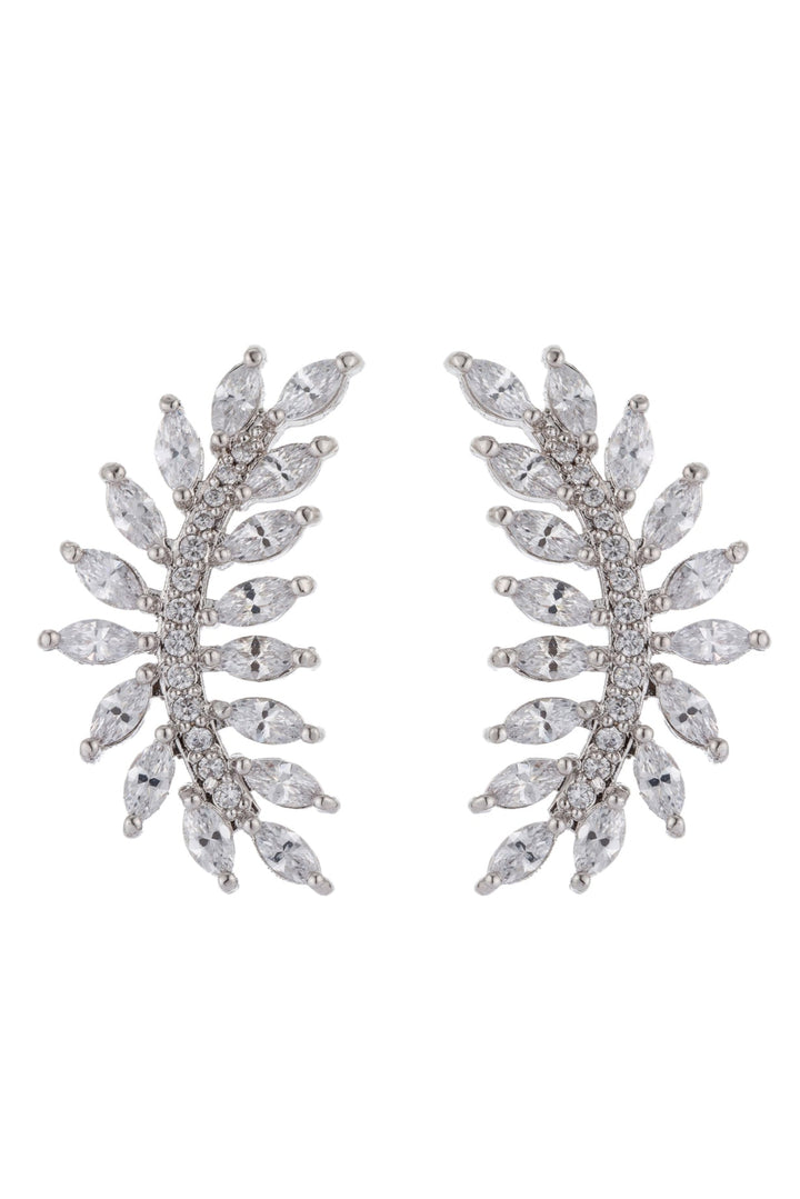 This Romana Ear Climber by Eye Candy LA is a regal and modern addition to any collection. Designed to resemble a fern-like crown, this ear climber features shimmering CZ crystals set in silver-tone brass. A striking piece that effortlessly elevates any look.