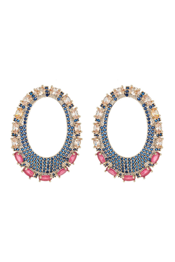 These Circe Earrings by Eye Candy LA offer a splash of color and sparkle. The 18K gold-plated brass hoops are adorned with shimmering cubic zirconia stones, making these earrings an eye-catching addition to any outfit. The playful design ensures they stand out as a statement piece or can be paired with other jewelry for added effect.