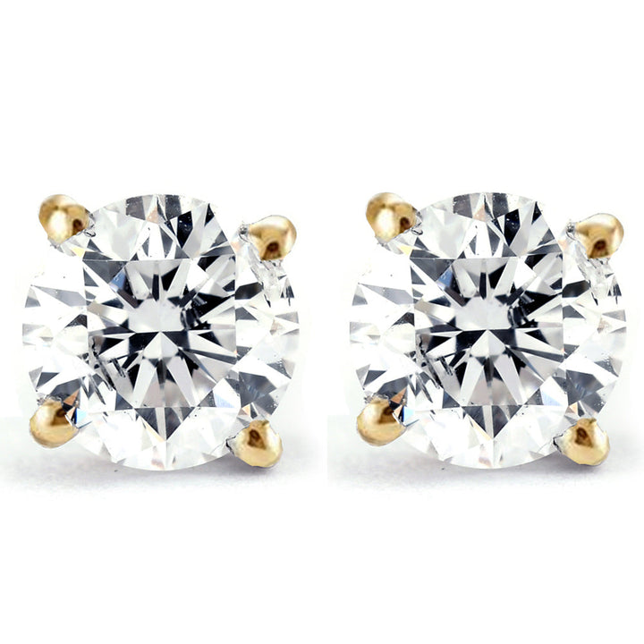 2 ct Round Diamond Studs in 14k Yellow Gold Screw Back Clarity Enhanced